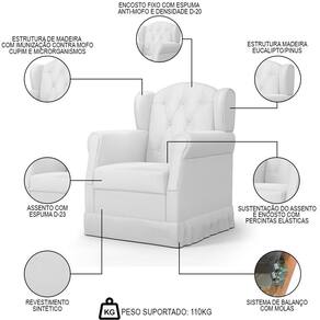 A Poltrona de Amamentação Balanço Letícia Sintético Branco - Phoenix Baby é um móvel que alia conforto e design. Fabricada em madeira de Eucalipto de Reflorestamento, ela possui uma estrutura resistente e durável. Sua espuma D-20 e D-23 proporciona um conforto extra para os momentos de descanso e amamentação. O Balanço é um diferencial que ajuda a relaxar e acalmar tanto a mãe quanto o bebê. Além disso, o revestimento Sintético é fácil de limpar e manter, tornando a poltrona ainda mais prática e funcional. Com a Poltrona Letícia, a mamãe terá um cantinho especial para cuidar do seu bebê com todo o conforto e estilo que deseja. Compre já!