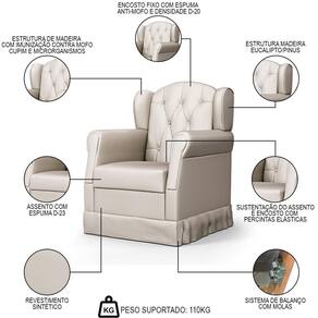 A Poltrona de Amamentação Balanço Lucy P04 Sintético Bege - Mpozenato é um móvel que alia conforto e design. Fabricada em madeira de Eucalipto de Reflorestamento, ela possui uma estrutura resistente e durável. Sua espuma D-20 e D-23 proporciona um conforto extra para os momentos de descanso e amamentação. O Balanço é um diferencial que ajuda a relaxar e acalmar tanto a mãe quanto o bebê. Além disso, o revestimento Sintético é fácil de limpar e manter, tornando a poltrona ainda mais prática e funcional. Com a Poltrona Lucy, a mamãe terá um cantinho especial para cuidar do seu bebê com todo o conforto e estilo que deseja. Compre já!