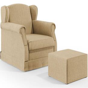 Características: Estrutura em madeira de reflorestamento de eucalipto, pinus e MDF; Revestimento em Linho Bege Escuro de alta qualidade; Assento com espuma D-23; Encosto com espuma D-20; Braço com espuma D-20 com tratamento anti-mofo; Percinta elástica de Nylon; Peso suportado: Até 100 kg; Sistema de balanço em madeira com molas, fixado com parafusos;