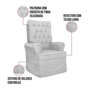 A Poltrona de Amamentação é um móvel indispensável na vida da mamãe e do recém-nascido. Geralmente nos primeiros meses, os horários de amamentação são mais frequentes, tendo que ficar de duas ou de três em três horas na mesma posição, não é mesmo? Mas, será que é preciso mesmo ter uma poltrona? Não é apenas luxo? Vale a pena lembrar que, ter uma poltrona, vai além da decoração apenas, é uma peça indispensável que garante muito mais segurança e conforto, tanto para o bebê, quanto para a mãe caso pegue no sono durante a amamentação. Por isso, oferecemos o que há de melhor! Olha que lindeza a Poltrona de Amamentação Laura! Com estofamento de qualidade, essa poltrona possui encosto de fibra, revestida com veludo, sistema de balanço com molas. Produzida em madeira maciça, com encosto alto, sua ergonomia foi desenvolvida pensando no conforto, bem estar sem sobrecarregar a coluna. Seu encosto/assento é feito com espumas de alta densidade D28 e percinta elástica. Os braços são do tamanho ideal para dar apoio à mamãe enquanto segura o bebê. Contém também um revestimento de excelente qualidade em Linho, um tecido de toque suave e super fácil de limpar! E para complementar essa linda peça, contém um puff, que além de servir de apoio para os pés, ajuda a combater o inchaço das pernas. Escolha sua Poltrona de Amamentação Laura e garanta o melhor proveito do momento de amamentação com seu filho(a).