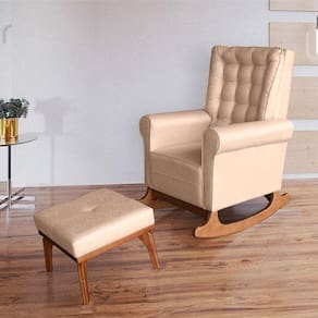 Poltrona de Amamentação com Balanço e Puff Paris Linho Bege - Ideal