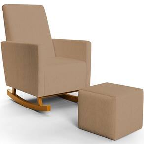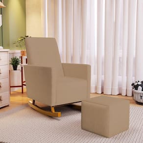 Poltrona de Amamentação com Balanço e Puff Ravena W01 Linho Bege Escuro - Lyam Decor