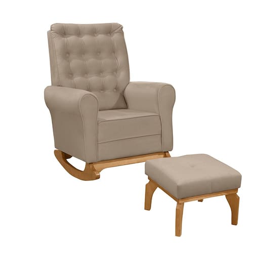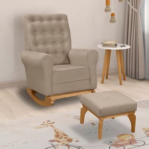 Poltrona de Amamentação com Balanço e Puff Thaila Veludo Bege M13 - D`Rossi