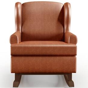 Características: Estrutura em madeira de pinus e eucalipto de reflorestamento, com imunização contra mofo, cupim e microrganismos. Revestimento em Couríssimo na cor Camel de alta qualidade. Encosto fixo com percintas elásticas, espuma D-23 e tratamento antimofo. Assento com espuma D-20, tratamento antimofo e almofada solta. Sustentação com percintas elásticas de alta resistência. Base com pés em formato de canoa e balanço suave. Peso suportado: Até 100 kg.