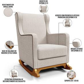 Medidas Internas: Altura do Encosto: 60 cm Largura do Encosto: 49 cm Largura do Assento: 49 cm Profundidade do Assento: 53 cm Largura dos Braços: 8 cm Altura do chão ao assento: 46 cm Largura da base balanço: 53 cm