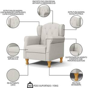 Conteúdo da Embalagem: 1 Poltrona, 4 Pés de Madeira.