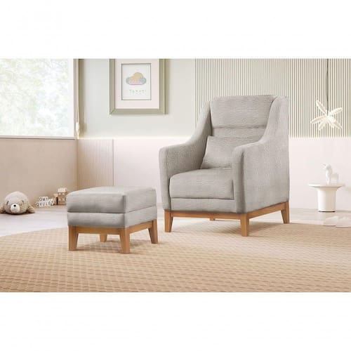 O conjunto de poltrona e puff Áquila proporciona conforto ergonômico tanto para a mãe quanto para o bebê durante o processo de amamentação, o que é fundamental para sessões prolongadas. Além disso, sua estrutura em madeira e percintas elásticas é projetada para promover uma postura adequada, ajudando a evitar desconfortos físicos. O estofamento de espuma D28 torna a amamentação mais agradável e relaxante, promovendo o vínculo entre mãe e bebê. Esses benefícios combinados fazem da poltrona de amamentação um investimento valioso, proporcionando conforto, praticidade e fortalecendo o elo afetivo entre eles.