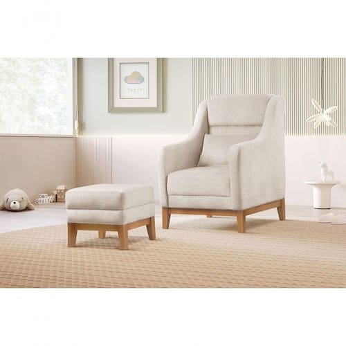 Poltrona De Amamentação Com Puff áquila linho Nude 100
