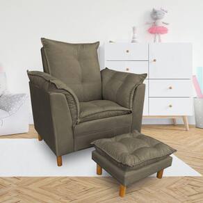 Poltrona de Amamentação com Puff Laura Veludo Cappuccino - Pallazio - Marrom