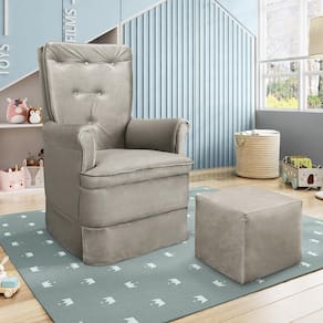 Poltrona Amamentação Valentina Balanço Puff traz conforto e beleza para o bebê e a mamãe. Feita com matéria-prima de alta qualidade, a poltrona possui estofado revestido por tecido de toque suave que proporciona aconchego para os momentos de amamentação. Já o puff possibilita que a mamãe descanse as pernas e os pés, tornando esse momento tão especial aindamais confortável.