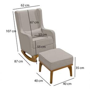 Poltrona Amamentação Áquila Retro Balanço proporciona todo o conforto e aconchego que a sua família precisa nesta fase tão especial. Com encosto alto, espuma de excelente densidade e qualidade com estrutura sólida de madeira. Seu design contemporâneo e compacto conquista as mamães que buscam a versatilidade de um móvel atemporal, que pode ser utilizado em outros cômodos da casa além do quarto de bebê. Estrutura e pés em madeira maciça de eucalipto seco Revestimento com veludo,espumas com Densidade D23 e D20 e Assento com percinta elástica. Não perca mais tempo e peça a Poltrona de Amamentação Áquila Retrô.
