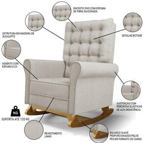 O móvel ideal para você que procura conforto, qualidade e sofisticação. Confira a Poltrona de Amamentação e Descanso Base Madeira Com Balanço Brenda G05 Linho Bege, da Mpozenato!