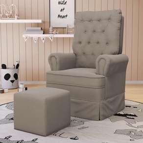 Uma Poltrona de Balanço feita com materiais de alta qualidade, estrutura em madeira de eucalipto, o tecido Veludo macio e resistente, e a espuma D23 a densidade ideal para o seu conforto, com um lindo design e balanço suave, que ajuda a relaxar e a embalar o sono do seu bebê. O Kit Poltrona e Puff possui um design moderno e sofisticado, com detalhes em botonê revestido no encosto, que dão um toque de charme e elegância ao ambiente. A Poltrona de Amamentação também acompanha um puff, que serve como apoio para os pés ou como assento extra. O puff tem o mesmo acabamento da poltrona, criando um conjunto harmonioso e bonito.