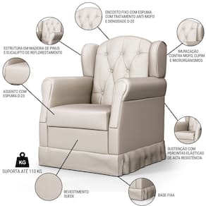 Sistema de Montagem: O produto é enviado montado. Conteúdo da Embalagem: 1 Poltrona. Volumes: 1 Volume. Garantia do Fabricante: 90 dias contra defeito de fabricação. Recomendação de Limpeza: Utilize pano levemente úmido.