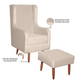 - Puff com Pés Palito de Madeira: Conforto adicional para os pés, complementando o design elegante da poltrona.