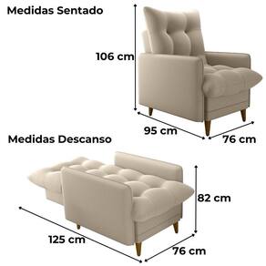 Conjunto Poltrona com Puff Montreal combina conforto e funcionalidade, composto por duas peças ideais para momentos de descanso ou amamentação. A poltrona conta com sistema reclinável de dois estágios (modo leitura e descanso), estrutura em madeira de Eucalipto de reflorestamento, reforçado com precintas elásticas. O assento e encosto são preenchidos com uma combinação de fibra siliconada e flocos de espuma (assim como o Puff), enquanto as braças são em espuma D23, o revestimento em tecido Veludo Light (toque mais leve e aveludado, brilho elegante e visual clássico). Os pés também em madeira completam, suportando até 110 kg por assento. Este móvel chegará em sua casa separado em 01 volume.