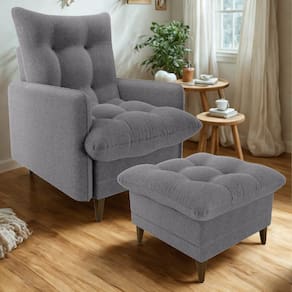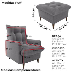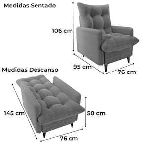 Conjunto Poltrona com Puff Montreal combina conforto e funcionalidade, composto por duas peças ideais para momentos de descanso ou amamentação. A poltrona conta com sistema reclinável de dois estágios (modo leitura e descanso), estrutura em madeira de Eucalipto de reflorestamento, reforçado com precintas elásticas. O assento e encosto são preenchidos com uma combinação de fibra siliconada e flocos de espuma (assim como o Puff), enquanto as braças são em espuma D23, o revestimento em tecido Bouclé (macio, encorpado, com visual moderno e aconchegante). Os pés também em madeira completam, suportando até 110 kg por assento. Este móvel chegará em sua casa separado em 01 volume.