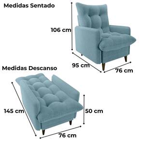 Conjunto Poltrona com Puff Montreal combina conforto e funcionalidade, composto por duas peças ideais para momentos de descanso ou amamentação. A poltrona conta com sistema reclinável de dois estágios (modo leitura e descanso), estrutura em madeira de Eucalipto de reflorestamento, reforçado com precintas elásticas. O assento e encosto são preenchidos com uma combinação de fibra siliconada e flocos de espuma (assim como o Puff), enquanto as braças são em espuma D23, o revestimento em tecido Bouclé (macio, encorpado, com visual moderno e aconchegante). Os pés também em madeira completam, suportando até 110 kg por assento. Este móvel chegará em sua casa separado em 01 volume.