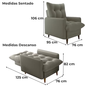 Conjunto Poltrona com Puff Montreal combina conforto e funcionalidade, composto por duas peças ideais para momentos de descanso ou amamentação. A poltrona conta com sistema reclinável de dois estágios (modo leitura e descanso), estrutura em madeira de Eucalipto de reflorestamento, reforçado com precintas elásticas. O assento e encosto são preenchidos com uma combinação de fibra siliconada e flocos de espuma (assim como o Puff), enquanto as braças são em espuma D23, o revestimento em tecido Veludo Light (toque mais leve e aveludado, brilho elegante e visual clássico). Os pés também em madeira completam, suportando até 110 kg por assento. Este móvel chegará em sua casa separado em 01 volume.