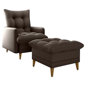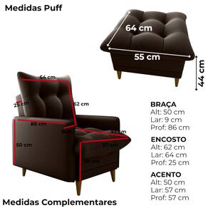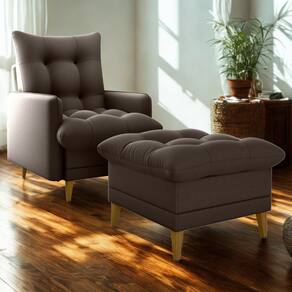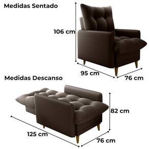 Conjunto Poltrona com Puff Montreal combina conforto e funcionalidade, composto por duas peças ideais para momentos de descanso ou amamentação. A poltrona conta com sistema reclinável de dois estágios (modo leitura e descanso), estrutura em madeira de Eucalipto de reflorestamento, reforçado com precintas elásticas. O assento e encosto são preenchidos com uma combinação de fibra siliconada e flocos de espuma (assim como o Puff), enquanto as braças são em espuma D23, o revestimento em tecido Veludo Light (toque mais leve e aveludado, brilho elegante e visual clássico). Os pés também em madeira completam, suportando até 110 kg por assento. Este móvel chegará em sua casa separado em 01 volume.