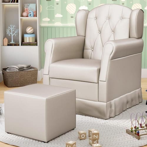 A Poltrona de Amamentação Fixa com Puff Lucy P04 Sintético Bege - Mpozenato é ideal para as mamães que buscam conforto e praticidade na hora de cuidar do seu bebê. Ela é feita de Tecido Sintético, que é fácil de limpar e combina com qualquer ambiente. A estrutura é de madeira Eucalipto e Pinus de Reflorestamento imunizada contra mofo, cupim e microrganismos, garantindo durabilidade e segurança. A Base Fixa tem uma estrutura firme, enquanto o puff serve como apoio para os pés. A poltrona tem um design moderno e elegante, que vai deixar o seu quarto ou sala mais bonito e aconchegante. Disponível nas versões com Base Fixa e com Base Balanço, verifique as especificações do produto e adquira já a sua!