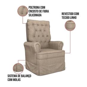 A Poltrona de Amamentação é um móvel indispensável na vida da mamãe e do recém-nascido. Geralmente nos primeiros meses, os horários de amamentação são mais frequentes, tendo que ficar de duas ou de três em três horas na mesma posição, não é mesmo? Mas, será que é preciso mesmo ter uma poltrona? Não é apenas luxo? Vale a pena lembrar que, ter uma poltrona, vai além da decoração apenas, é uma peça indispensável que garante muito mais segurança e conforto, tanto para o bebê, quanto para a mãe caso pegue no sono durante a amamentação. Por isso, oferecemos o que há de melhor! Olha que lindeza a Poltrona de Amamentação Laura! Com estofamento de qualidade, essa poltrona possui encosto de fibra, revestida com veludo, sistema de balanço com molas. Produzida em madeira maciça, com encosto alto, sua ergonomia foi desenvolvida pensando no conforto, bem estar sem sobrecarregar a coluna. Seu encosto/assento é feito com espumas de alta densidade D28 e percinta elástica. Os braços são do tamanho ideal para dar apoio à mamãe enquanto segura o bebê. Contém também um revestimento de excelente qualidade em Linho, um tecido de toque suave e super fácil de limpar! O tom Bege TB193, é uma cor extremamente elegante e perfeita! Escolha sua Poltrona de Amamentação Laura e garanta o melhor proveito do momento de amamentação com seu filho(a).