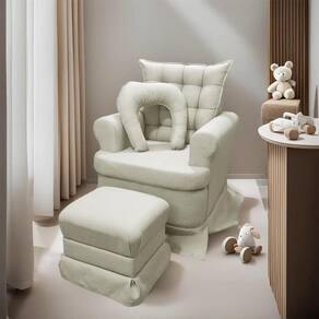 Poltrona de Amamentação Luxo Linho Boucle Dourado com Balanço e Puff SOFA STORE - Bege