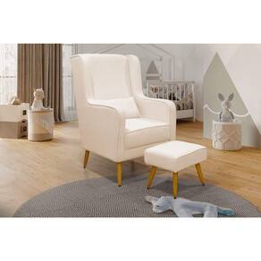 Poltrona De Amamentação Pé Palito Eduarda Com Puff Veludo Bege - Lg Decor Baby