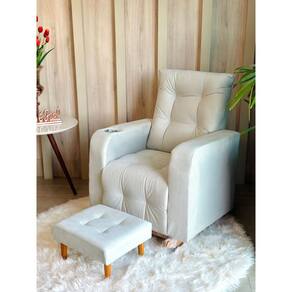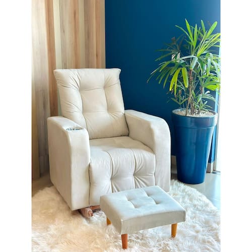 Acompanha puff estofado, pensado para auxiliar no relaxamento das pernas e proporcionar ainda mais bem-estar.