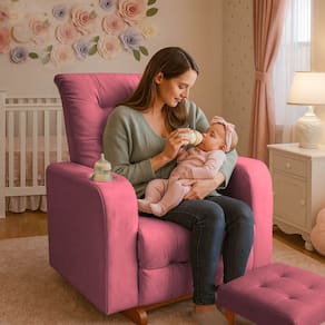 A poltrona de amamentar foi desenvolvida para oferecer conforto, praticidade e segurança durante os momentos mais importantes entre mãe e bebê. Produzida em tecido suede liso de alta durabilidade, seu design elegante com pés de madeira em balanço proporciona uma experiência aconchegante, ideal para amamentação, descanso ou leitura.