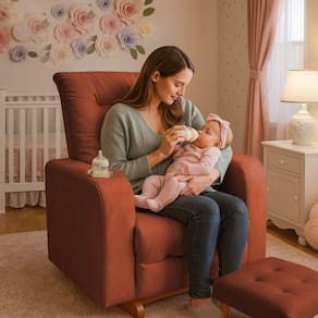 A poltrona de amamentar foi desenvolvida para oferecer conforto, praticidade e segurança durante os momentos mais importantes entre mãe e bebê. Produzida em tecido suede liso de alta durabilidade, seu design elegante com pés de madeira em balanço proporciona uma experiência aconchegante, ideal para amamentação, descanso ou leitura.