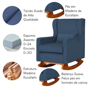 Poltrona De Descanso Com Balanço E Amamentar Aurora Suede Suede Azul Royal