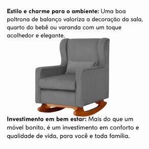 Perfeita para Amamentar, Descansar ou Relaxar. Seja no quarto do bebê, na sala ou no cantinho da leitura, essa poltrona é ideal para quem valoriza aconchego com estilo. O movimento de balanço suave ajuda acalmar seu bebê e também relaxa o corpo após um longo dia. A Paloma se adapta com facilidade, proporcionando um toque de elegância e bem-estar em qualquer espaço.