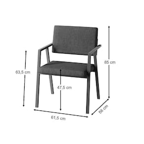 Assento e Encosto com espuma D28, tapeçado em tecido conforme de cores. Estrutura Metálica 30x20 parede 1,2mm com Tratamento Anti-Corrosivo e Pintura Epoxi.