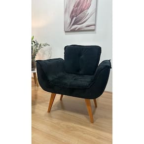Poltrona Decorativa 1 Lugar Preto 322 Rebeca Nossa Poltrona Bege Rebeca é um produto moderno, com design elegante que combina com qualquer ambiente e deixa sua sala ainda mais linda e aconchegante. MEDIDAS DO SOFÁ: Altura: 90 mLargura: 78 mProfundidade: 60 cm Assento: O assento com espuma 23, Fibra de silicone, percinta elástica, que proporcionam uma acomodação extremamente confortável. Encosto: O encosto com espuma 23, e fibra de silicone. Estrutura: Sua estrutura é com madeira de eucalipto, 100% reflorestada e seca em estufa, e os pés são produzidos em madeira e rodízio de silicone Revestimento: O revestimento é em tecido veludão, deixando a superfície do sofá muito mais macia. Braços: Braços com Fibra de silicone.