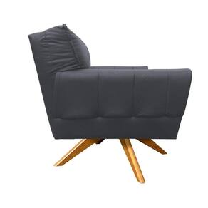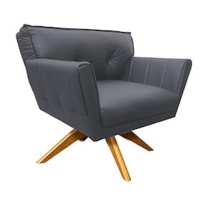 Poltrona Decorativa Anitta Corino Grafite Base Giratória Madeira - D'Rossi