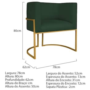 - Detalhes dos Pés: acompanha base de ferro, de alta resistência; Acompanha Almofadas extras: Não Acompanha Puff: Não Almofada do assento: Não Possui Almofada do encosto: Não Possui Altura do assento até o chão: 50 Altura do Encosto: 31 Altura dos Pés: 37.5 Ambiente Principal: Sala de Estar Cor: Verde/Dourado Cor do Produto: Verde/Dourado Design Assinado: Não Enchimento do Assento: Espuma D-18 Enchimento do Braço: Espuma D-18 Enchimento do Encosto: Espuma D-18 Encosto para a Cabeça: Não Estampado: Não Extensível: Não Firmeza do Assento: Firme Itens Inclusos: 1 Poltrona Linha ou Coleção: Munique Material do Braço: Madeira e espuma Material dos Pés: Metal Modelo de Poltrona: Fixo Necessita Montagem: Não Origem do Produto: Nacional Peso: 14 Possui Percintas Elásticas: Sim Possui Pés: 01 Possui Rodízio: Não Recomendações de Uso, Manutenção e Limpeza: Limpar com flanela limpa e seca. Não molhar o móvel e não expor em lugar úmido ou próximo de fontes de calor. Não usar produtos abrasivos. Resistente à Chuva: Não Suporta Até (kg): 120 Tecido Predominante: Linho Tipo de Assento: Fixo Tipo de Encosto: Fixo Tipo de Espuma do Assento: Espuma Convencional Tipo de Espuma do Encosto: Espuma Convencional Tipo de Poltrona: Decorativa Marca: Maranata Estofados Ean: 7909903457955