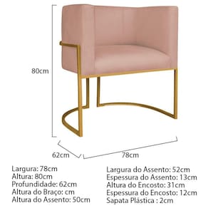 - Detalhes dos Pés: acompanha base de ferro, de alta resistência; Acompanha Almofadas extras: Não Acompanha Puff: Não Almofada do assento: Não Possui Almofada do encosto: Não Possui Altura do assento até o chão: 50 Altura do Encosto: 31 Altura dos Pés: 37.5 Ambiente Principal: Sala de Estar Cor: Rosê/Dourado Cor do Produto: Rose/Dourado Design Assinado: Não Enchimento do Assento: Espuma D-18 Enchimento do Braço: Espuma D-18 Enchimento do Encosto: Espuma D-18 Encosto para a Cabeça: Não Estampado: Não Extensível: Não Firmeza do Assento: Firme Itens Inclusos: 1 Poltrona Linha ou Coleção: Munique Material do Braço: Madeira e espuma Material dos Pés: Metal Modelo de Poltrona: Fixo Necessita Montagem: Não Origem do Produto: Nacional Peso: 14 Possui Percintas Elásticas: Sim Possui Pés: 01 Possui Rodízio: Não Recomendações de Uso, Manutenção e Limpeza: Limpar com flanela limpa e seca. Não molhar o móvel e não expor em lugar úmido ou próximo de fontes de calor. Não usar produtos abrasivos. Resistente à Chuva: Não Suporta Até (kg): 120 Tecido Predominante: Suede Tipo de Assento: Fixo Tipo de Encosto: Fixo Tipo de Espuma do Assento: Espuma Convencional Tipo de Espuma do Encosto: Espuma Convencional Tipo de Poltrona: Decorativa Marca: Maranata Estofados Ean: 7909903458143