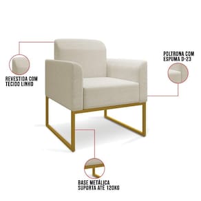 Poltrona Decorativa Base Industrial Maressa - Ibiza é a Poltrona ideal para você, com seu tecido de Linho lindíssimo, de toque macio e suave, além dos pés em estrutura metálica, trazendo uma base estável para o produto.