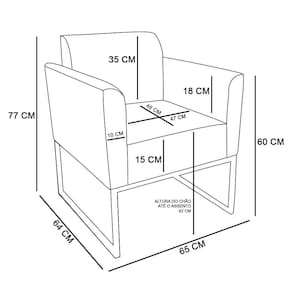 Material da Espuma: Espuma D-28 no assento e encosto e D-23 nos braços.