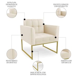 Você está procurando uma poltrona que combine com a sua Sala De Estar, recepção ou seu quarto, que ofereça conforto e qualidade? Então você vai adorar a Poltrona Decorativa Base Industrial Dourado Ana Sintético Bege, da Ibiza!