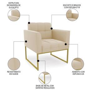 Você está procurando uma poltrona que combine com a sua Sala De Estar, recepção ou seu quarto, que ofereça conforto e qualidade? Então você vai adorar a Poltrona Decorativa Base Industrial Dourado Ana Suede Bege, da Ibiza!
