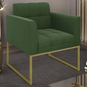 Você está procurando uma poltrona que combine com a sua Sala De Estar, recepção ou seu quarto, que ofereça conforto e qualidade? Então você vai adorar a Poltrona Decorativa Base Industrial Dourado Ana Suede Verde, da Ibiza!
