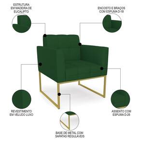Você está procurando uma poltrona que combine com a sua Sala De Estar, recepção ou seu quarto, que ofereça conforto e qualidade? Então você vai adorar a Poltrona Decorativa Base Industrial Dourado Ana Veludo Luxo Verde, da Ibiza!