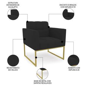 Você está procurando uma poltrona que combine com a sua Sala De Estar, recepção ou seu quarto, que ofereça conforto e qualidade? Então você vai adorar a Poltrona Decorativa Base Industrial Dourado Ana Veludo Preto, da Ibiza!