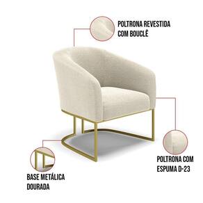 Tem novidades chegando por aqui! Olha só essa nossa inédita Poltrona Stella Bouclê. A Poltrona Stella Bouclê é para todas as ocasiões, é ideal para você relaxar, assistir tv ou ler um livro, mantendo-o confortável ao longo do dia! Um estofado versátil, que foge do convencional pelo seu design e tecido luxuoso. Seu formato curvo, marcante e sofisticado, oferece conforto de forma excepcional, com aquela sensação de abraço, que deixa o coração quentinho! Ela é fácil de transportar, pois tem um peso leve e um tamanho compacto. Ela suporta até 120 kg de peso, podendo ser utilizada por pessoas de diferentes biotipos. Desenvolvida com atenção aos detalhes para atender todas suas expectativas e necessidades, seu aspecto arredondado e anatômico possibilita que a postura fique sempre alinhada mantendo a coluna na posição correta. Ela dispõe de um acabamento impecável revestida em Bouclê, um tecido um tecido maleável que além de ser muito bonito é a grande tendência do momento, uma lã mais refinada e quente com toque suave semelhante à textura natural da ovelha. Contém uma estrutura em madeira de reflorestamento eucalipto, sua sustentação é dada pela Base Industrial Dourado, que garante mais segurança e firmeza ao sentar-se. Ela tem um acabamento reforçado e espuma de qualidade D23, que oferece maciez e aconchego. Além do mais ela tem assento com persintas elásticas, que proporcionam ibilidade e conforto. A Poltrona Stella é um produto de alta qualidade, beleza e funcionalidade. Ah! Vale a pena lembrar que a Poltrona Stella Bouclê, foi produzida em quantidades limitadas para aqueles que procuram criar um visual diferenciado e exclusivo. Então, não deixe de aproveitar esse lançamento, hem! Leve a sua agora mesmo. Dimensões do Produto: Altura Total: 81 cm Largura Total: 68 cm Profundidade Total: 60 cm Altura do Encosto: 40 cm Largura do Assento: 45 cm Profundidade do Assento: 45 cm Altura do chão ao Assento: 45 cm Espessura do Assento: 15 cm Espessura do braço: 7 cm Altura do chão ao braço: 70 cm Altura interna do braço: 28 cm Tamanho dos pés: 30 cm Peso: 18 kg Especificações do Produto: Estrutura: Madeira Eucalipto Espuma: D-23 Tecido: Bouclê Peso Suportado: Até 120 Kg Tipo de Pés: Base Industrial Dourado Tipo de Encosto: Fixo Tipo de Assento: Fixo Complexidade da Montagem: Baixo Montagem: O produto vai montado, apenas parafusar a base Garantia: 90 dias contra defeito de fabricação Instruções de Limpeza: Utilizar um pano limpo e levemente úmido Você irá Receber: 01 Poltrona - Entregue em: 01 Volume