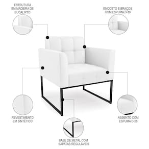 Você está procurando uma poltrona que combine com a sua Sala De Estar, recepção ou seu quarto, que ofereça conforto e qualidade? Então você vai adorar a Poltrona Decorativa Base Industrial Preto Ana Sintético Branco, da Ibiza!