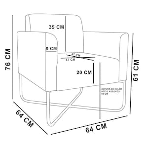 Altura do chão ao braço: 18 cm.