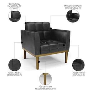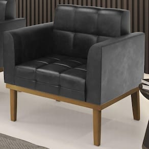 Você está procurando uma poltrona que combine com a sua Sala De Estar, recepção ou seu quarto, que ofereça conforto e qualidade? Então você vai adorar a Poltrona Decorativa Base Madeira Castanho Ana Sintético PU Preto, da Ibiza!