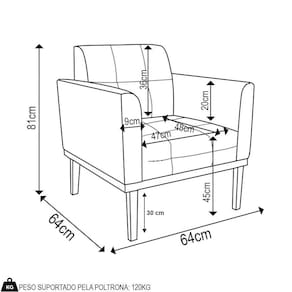 Esta Poltrona Decorativa é revestida em sintético PU, que é durável e fácil de limpar, e ainda valoriza o design da poltrona. Os braços e encosto são confortáveis em espuma D-18, já o assento é com espuma D-26 de alta densidade, que garante um assento firme e aconchegante, ideal para relaxar após um dia cansativo. A base em madeira de eucalipto é um charme à parte, que confere um toque Rústico e sofisticado à peça. A poltrona tem uma estrutura resistente e suporta até 120 kg. A montagem é muito simples, pois a Poltrona já vem pronta, bastando apenas fixar a base com os parafusos que acompanham o produto. A limpeza também é muito prática, pois basta utilizar um pano limpo e levemente úmido, sem produtos abrasivos, para manter a sua poltrona sempre em bom estado. Sem dúvidas um item que vai transformar a sua sala em um ambiente mais confortável e estiloso!